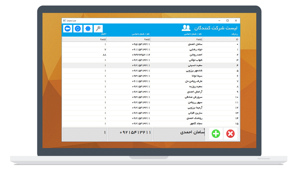 اضافه سازی شرکت کننده جدید به سادگی تایپ نام یا شماره و زدن کلید اینتر ! یا زدن چند کلیک و وارد کردن لیست شرکت کنندگان از تغریبا تمام نرم افزارها !